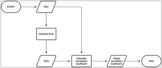 The purpose of this study was to use the CC to develop an easy to implement methodology to detect issues with HSI data. The methodology was intended explicitly for the detection of errors, not for the identification of their origin. Although other error detection methodologies exist (e.g., [,,,]), they can be expensive to implement and rely on a higher level of mathematical understanding. To develop a novel method, the CC was first characterized with respect to artificially-induced errors in ground data. Afterwards, this information was applied to locate the spatial location and spectral bands associated with errors in real HSI data. The overall objective of this study was to substantiate the CC metric as a low monetary cost, robust and simple statistical tool in the quality assessment of EO HSI data through the detection of errors.