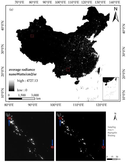 3.1. Correction Results of NPP-VIIRS NTL Data