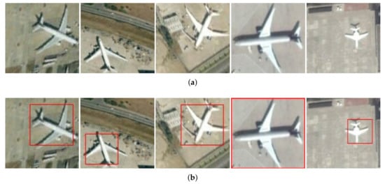 Recently, object detection methods [,,,] using convolutional neural networks have been proposed. With the help of these state-of-art methods, aircraft detection in remote sensing images has been greatly developed. The works in [,] benefited from the rich feature representation of CNN model and effectively detected aircraft in remote sensing images. They outputted the coordinates of aircraft through the regression of neural networks.