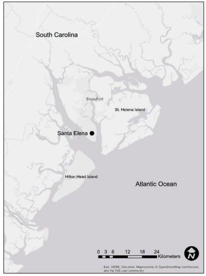 - Rowland, L.S.; Wise, S.R. Bridging the Sea Islands’ Past and Present, 1893–2006: The History of Beaufort County, South Carolina; University of South Carolina Press: Columbia, SC, USA, 2015; Volume 3. [Google Scholar]