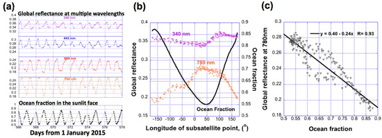 10], which, at least at the longer wavelengths, resembles a structure of ocean fraction over the sunlit face of Earth (