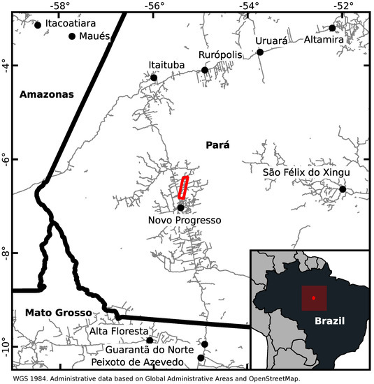- Fearnside, P.M. Brazil’s Cuiabá- Santarém (BR-163) Highway: The Environmental Cost of Paving a Soybean Corridor Through the Amazon. Environ. Manag. 2007, 39, 601–614. [Google Scholar] [CrossRef] [PubMed]
