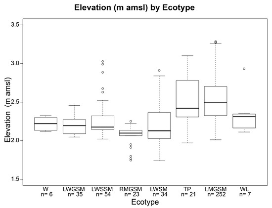 - Jorgenson, T.; Ely, C. Topography and flooding of coastal ecosystems on the Yukon-Kuskokwim Delta, Alaska: Implications for sea-level rise. J. Coast. Res. 2001, 17, 124–136. [Google Scholar]