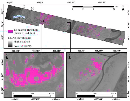Whitley, M.A.; Frost, G.V.; Jorgenson, M.T.; Macander, M.J.; Maio, C.V.; Winder, S.G. Assessment of LiDAR and Spectral Techniques for High-Resolution Mapping of Sporadic Permafrost on the Yukon-Kuskokwim Delta, Alaska. Remote Sens. 2018, 10, 258. https://doi.org/10.3390/rs10020258