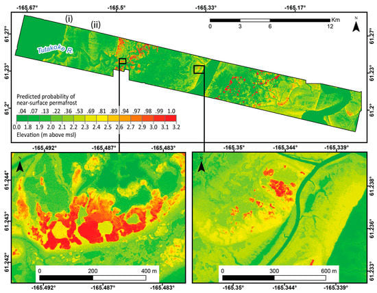 - Panda, S.K.; Prakash, A.; Solie, D.N.; Romanovsky, V.E.; Jorgenson, M.T. Remote sensing and field-based mapping of permafrost distribution along the Alaska highway corridor, Interior Alaska. Permafr. Periglac. Process. 2010, 21, 271–281. [Google Scholar] [CrossRef]