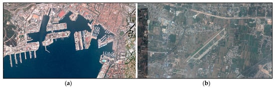Sample images from the unlabeled dataset. (a) Image of the boundary area of sea and land in Toulon, France; (b) Image of land in Xi’an, China.