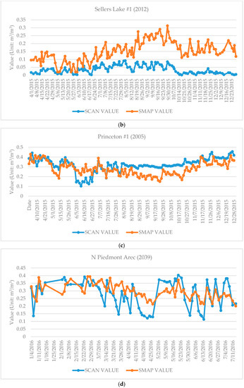 - Colliander, A.; Jackson, T.; Bindlish, R.; Chan, S.; Das, N.; Kim, S.; Cosh, M.; Dunbar, R.; Dang, L.; Pashaian, L. Validation of SMAP surface soil moisture products with core validation sites. Remote Sens. Environ. 2017, 191, 215–231. [Google Scholar] [CrossRef]