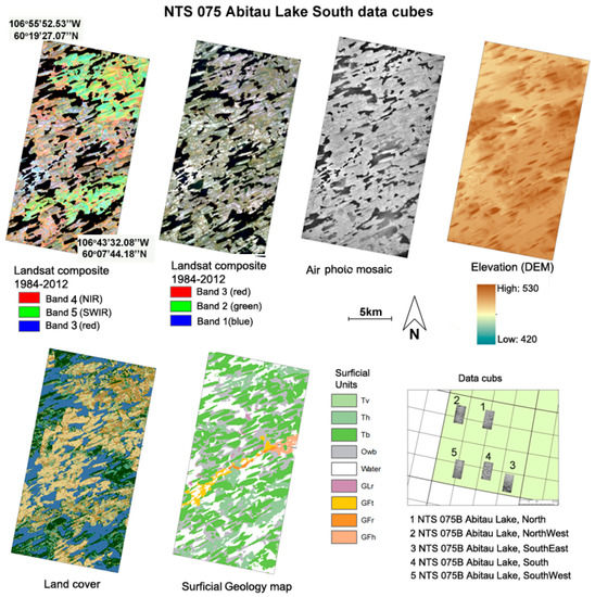 Example of the data cubes for National Topographic System map 075B Abitau study: these data sets are for the South subarea.