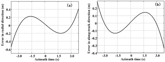 Simulated motion errors in the (a) radial direction and (b) along-track direction.