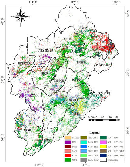 - Duo, A.; Zhao, W.; Qu, X.; Jing, R.; Xiong, K. Spatio-temporal variation of vegetation coverage and its response to climate change in North China plain in the last 33 years. Int. J. Appl. Earth Obs. Geoinf. 2016, 53, 103–117. [Google Scholar]