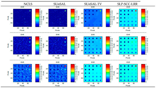 where Xi is the true fractional abundance vector of the i-th endmember and is the estimated fractional abundance vector of the i-th endmember. m stands for the number of the endmembers.
