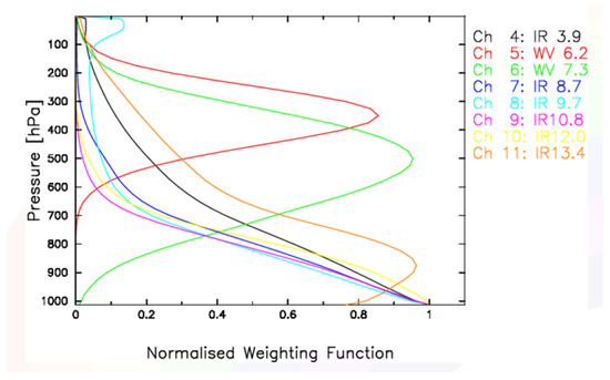 10. Schmetz, J.; Pili, P.; Tjemkes, S.; Just, D.; Kerkmann, J.; Rota, S.; Ratier, A. An introduction to Meteosat Second Generation (MSG). Bull. Am. Met. Soc. 2002, 83, 977–992. [Google Scholar] [CrossRef]
