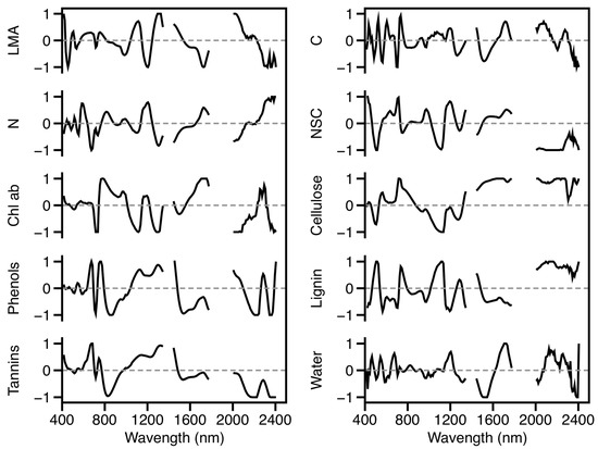3.1.3. Leaf Spectral–Chemical Relationships