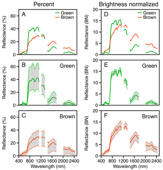 - Feilhauer, H.; Asner, G.P.; Martin, R.E.; Schmidtlein, S. Brightness-normalized Partial Least Squares Regression for hyperspectral data. J. Quant. Spectrosc. Radiat. Transf. 2010, 111, 1947–1957. [Google Scholar] [CrossRef]