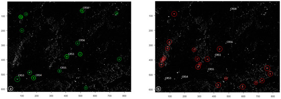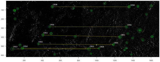 The results of the CRs offsets derived by the feature-based matching algorithms with respect to the GPS measurements are presented in Table 7. The best-offset estimations are obtained by: the BRISK for CR53, the HARRIS for CR54, the BRISK_S for CR54, the MEIGEN and MEIGEN_S for CR58, and, the HARRIS and MEIGEN (with SURF descriptor as well) for CR51 and 55 (see Table 7).