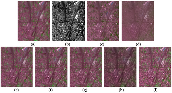for , where is the fused HS image, and is the kth band of the fused HS image. Since the amount of the injected details is regulated by the parameter , the spectral and spatial distortion can be restrained.