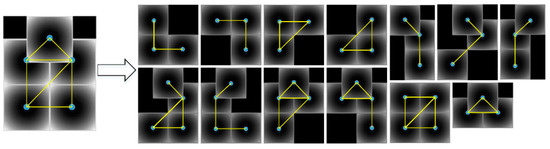 When the graph is settled down, the partial configuration design process is the same with [13,17] which is to select a sub-graph from while maintaining the connectivity constraint [29] and the vertex number constraint. These two constraints are used to model the location and ratio of occlusion. An example of this graph is given in Figure 6. This process can be formulated as automatically choosing a connected sub-graph from as Equation (2) and the selected part index set is formulated as .