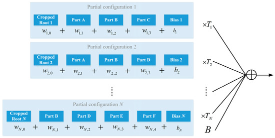 For each partial configuration, we optimize the weights of its elements. Let denotes the score of filter of partial configuration i, the score of the partial configuration can be formulated as
