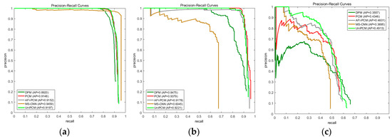 PRC results of all methods on (a) NWPU10 VHR dataset; (b) Occlusion dataset; and (c) Ship dataset.