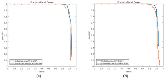 Both results on the NWPU10 VHR dataset and the Occlusion dataset illustrate that the unified weights learning process is better than the independent one. On the NWPU10 VHR dataset, UniPCM gets an AP improvement of 0.01 which gets to 0.012 on the Occlusion dataset. It is noticeable that independent learning gets a relatively higher precision when recall is about 0.9, but soon declines dramatically when recall goes up. The results on two datasets verify that unified weights learning can achieve better balance between the elements in partial configurations and also between partial configurations, and is thus better for unified detection than independent learning.