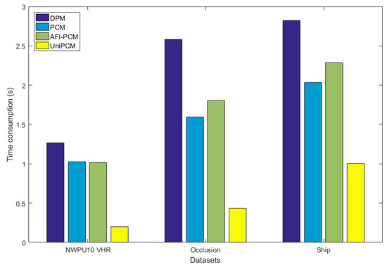 AFI-PCM and PCM simply detect DPM models of partial configurations, that is, it is nearly times of one single DPM detection. UniPCM only convolves through the image once and then directly obtains the responses of all partial configurations. To evaluate the more important detection speed, we obtain the statistical time consumption of PCM, AFI-PCM, and UniPCM for full-direction detection. Figure 16 illustrates the time consumption per partial configuration per image of the three methods. The average image sizes of datasets are 683 × 970, 1125× 1457, and 987 × 1747. Similar to Section 4.5, we give the detection time consumption of MSCNN of each image in the three datasets, which is about 0.15 s, 0.32 s, and 0.35 s, respectively.