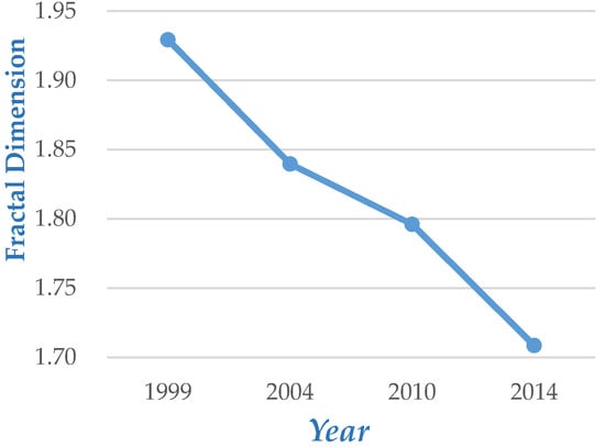 Changes of fractal dimension in Jingzhou’s built-up area.