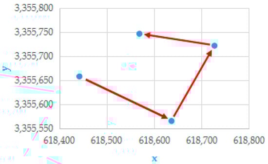 By taking the position with average coordinates of the barycenter over four years as the center, eight directions of built-up area expansion were drawn up. The calculation equation [] is: