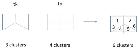 We have implemented a general clustering approach, which does not require the cluster maps at different times to be the same. To perform the clustering, we use k-means for MODIS images at tk and tp. The clusters can be dramatically different at two different times. Let us use Figure 11 below to illustrate our idea. At tk, there are three clusters and at tp, there are four clusters. When we overlay the cluster maps, we will have six combinations of clusters. If there are N clusters at tk and M clusters at tp, then there will be at most NM clusters in total. In each cluster, we estimate a matrix F. We applied this clustering approach to two cases. The results are shown below.
