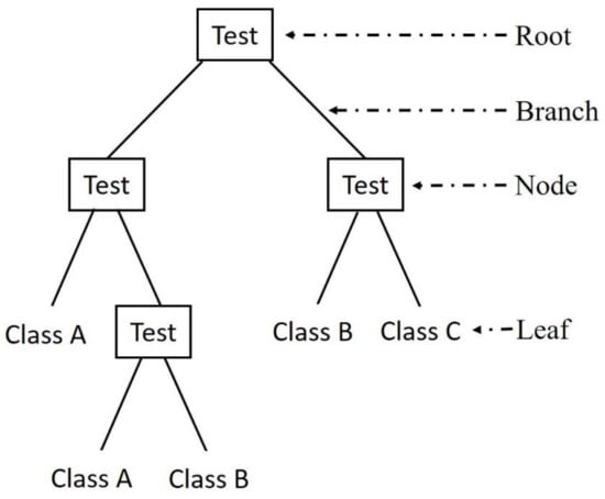 47]. By training known samples and summing up rules from the training process, the DTC establishes a tree structure (