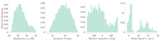 - Wentz, F.J.; Smith, D.K. A model function for the ocean-normalized radar cross section at 14 GHz derived from NSCAT observations. J. Geophys. Res. Oceans 1999, 104, 11499–11514. [Google Scholar] [CrossRef]