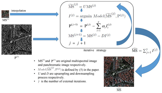 After the coefficients are obtained, the high-resolution multispectral image can be computed by (2). Furthermore, model (3) is combined with an iterative strategy. It will be detailed in Section 3 since it is used in the method proposed in this paper as well.