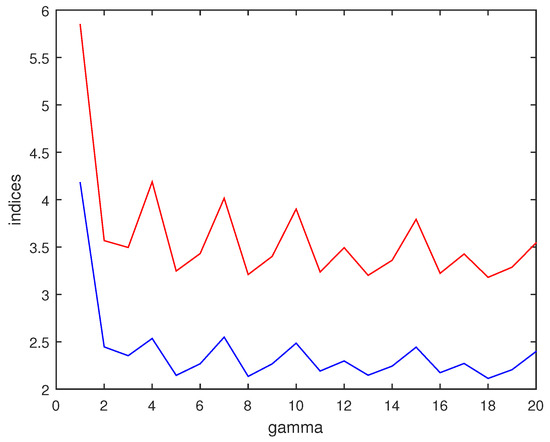 When we let goes even larger, things become different. This can be seen in Figure 7, which shows how indices vary when goes from 1 to 20. Since situation for all the tested datasets and all the indices is similar, we only present two indices related to Pléiades dataset here. From Figure 7, it is obvious that the curves of indices fluctuate when is larger than 3. However, it is also noticeable that there is not much improvement for the performance of Algorithm 2 corresponds to larger compared with the case of .