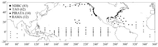 Locations of the National Data Buoy Center (NDBC), Tropical Atmosphere Ocean (TAO), Pilot Research Moored Array (PIRATA), and Research Moored Array for African-Asian-Australian Monsoon (RAMA) moored buoys.