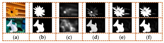 - Perazzi, F.; Krahenbuhl, P.; Pritch, Y.; Hornung, A. Saliency filters: Contrast based filtering for salient region detection. In Proceedings of the IEEE Conference on Computer Vision and Pattern Recognition, Providence, RI, USA, 16–21 June 2012; pp. 733–740. [Google Scholar]