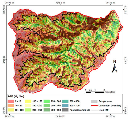 Spatial distribution of AGB in the Rio San Francisco catchment.
