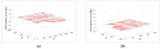 (a) Discrepancy in x-direction; (b) discrepancy in y-direction.
