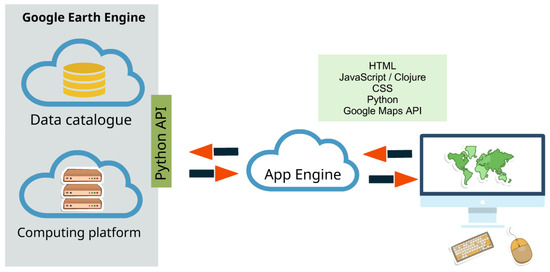 The infrastructure for spatial application development provided by Google. The Google Earth Engine consists of a cloud-based data catalogue and computing platform. The App Engine framework is used to host the Earth Engine application.