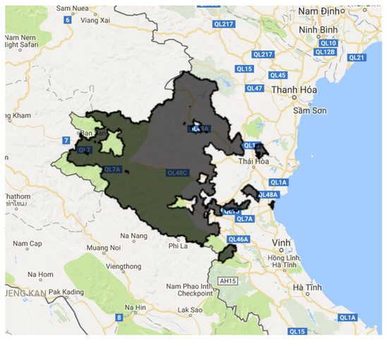 Location of the intervention area in Nghe An and Thanh Hoa, Vietnam.
