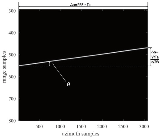 where is the estimated slope of the trajectory, PRF is the pulse repetition frequency. Actually, the key is the estimation of trajectory slope [1,40,41]. To acquire the slope from the aforementioned range-compressed and range corrected image, the image processing techniques are used. For example, HT and RT are used to obtain the slope, in which RT requires low Signal-to-Noise Ratio (SNR), but HT is more efficient than RT. Notes that all RT- and HT-based methods are required to map each point of the image into the parameter space. In this case, the computing load can be extremely heavy [31]. Such kind of weakness limits the applications in real-time SAR signal processing.