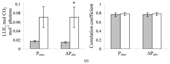 - We used only linear correlations between PRI and photosynthetic parameters. These correlations were taken from papers or were calculated on the basis of the determination coefficient (in case of a linear regression) or were calculated on the basis of data from the articles. If correlation coefficients, determination coefficients for linear functions, or graphical data with changes of photosynthetic parameters and PRI were absent, we did not include these works in the analysis;