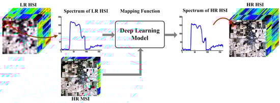 We propose a framework of deep learning based HSI-MSI fusion in Figure 3. A deep learning network is used to model the mapping between the spectra of LR and HR HSIs. In order to fuse MSIs, we should also extract the features from the MSIs with the deep learning model. The features extracted from the HSI and MSI would be fused by the deep learning network. After learning the mapping function, the deep learning model could reconstruct the spectrum of the HR HSI.