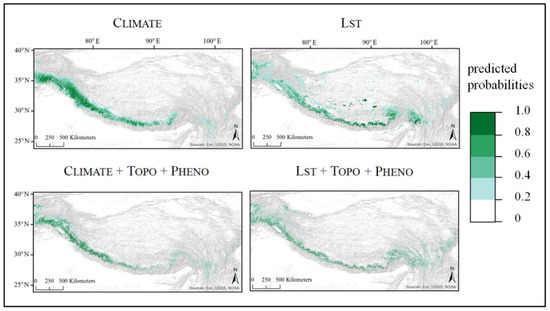 - Zimmermann, N.E.; Edwards, T.C.; Moisen, G.G.; Frescino, T.S.; Blackard, J.A. Remote sensing-based predictors improve distribution models of rare, early successional and broadleaf tree species in Utah. J. Appl. Ecol. 2007, 44, 1057–1067. [Google Scholar] [CrossRef] [PubMed]