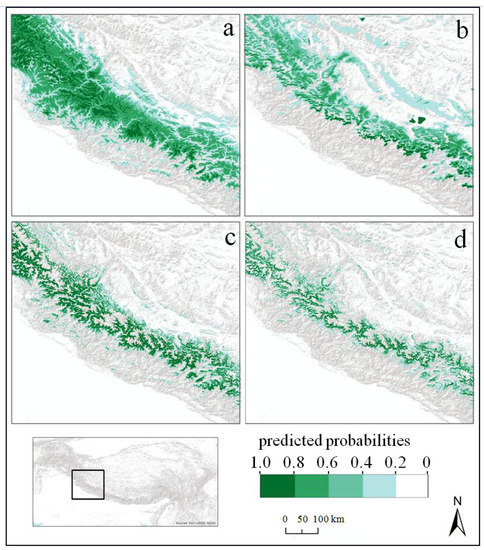 - Bobrowski, M.; Schickhoff, U. Why input matters: Selection of climate data sets for modelling the potential distribution of a treeline species in the Himalayan region. Ecol. Model. 2017, 359, 92–102. [Google Scholar] [CrossRef]