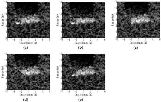 The test images collected in the real-world scenarios are often contaminated by the noises from the background environment or radar systems. Hence, it is crucial that the recognition algorithms can maintain robust under possible noise corruption. To test the performance of the proposed method under noise corruption, the noisy SAR images are first simulated by adding additive Gaussian noises to the original images according to the predefined signal-to-noise ratio (SNR) []. Figure 9 shows the noisy images at different SNRs. With the deterioration of noise contamination, more and more target characteristics are submerged in the noises, which will definitely increase the difficulty of correct target recognition.