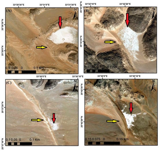 - El-Baz, F.; Mainguet, M.; Robinson, C. Fluvio-aeolian dynamics in the north-eastern Sahara: The relationship between fluvio/aeolian systems and groundwater concentration. J. Arid Environ. 2000, 44, 173–183. [Google Scholar] [CrossRef]