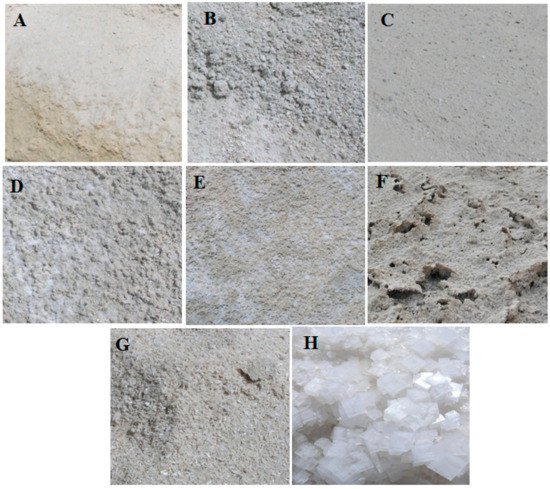 Photos of the eight representative soil-salinity classes described in Table 2.