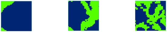Three parameters are adopted to represent boundary information: boundary length, endmember (canopy) height difference at boundary and relative position of adjacent patches (boundary orientation). Figure 2 displays 30-m resolution land cover maps of three 1 km × 1 km resolution pixels comprising two vegetation types. The fragmentation degree of the three pixels gradually increases, and the boundary length increases with the fragmentation level. The boundary length describes the overall fragmentation of mixed pixels and could be classified as several types based on boundary orientation and height difference.