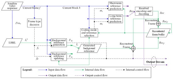 The LBRL-based encoding and decoding of satellite videos requires the LBRL reference image at both the encoding and decoding ends. Figure 4 illustrates the overall LBRL-based encoding framework. The encoding process can be described as follows: