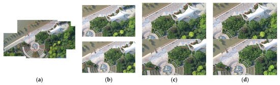 Video clips from UAVs: Four video clips from UAVs captured over Yangtze river park, Wuhan, China, were employed to evaluate performance, as shown in Figure 5a. These video clips were captured once a day for four consecutive days by a Yuneec Typhoon H UAV. The flight height was fixed at 100 m. Each original video clip contained 300 frames of 1080p (1920 Γ 1280) resolution, 15 fps. The videos contain slow flight and fast flight. Two other videos in the same area were captured to extract frames as data to develop a reference image library for this test. In total, the area contained nine stitched key frame pictures.