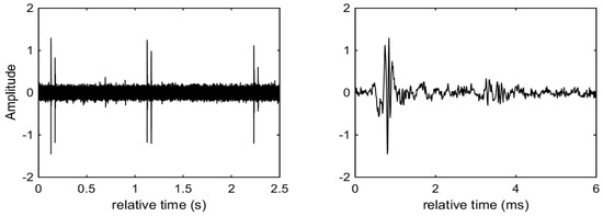 Extract from a sequence of regular clicks (left) and detailed view of a single click (right) recorded off Palaiochora.